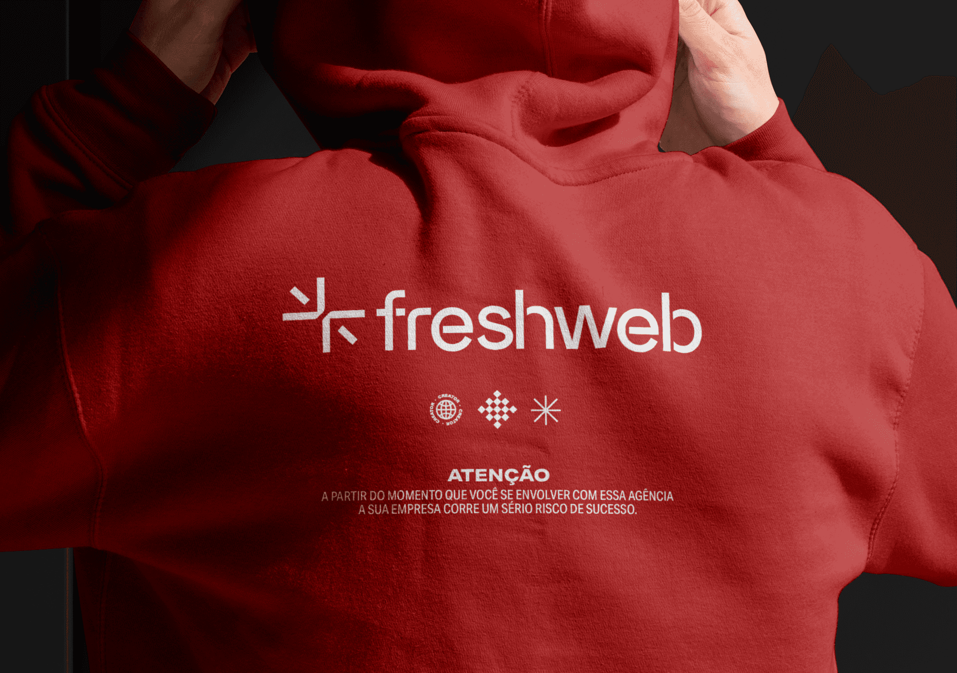 Identidade visual desenvolvida para a Freshweb, agência de marketing estratégico. O símbolo funde a letra "F" com referências ao ícone de loading e ao cursor, traduzindo visualmente o conceito de refresh digital. Uma abordagem tipográfica exclusiva, paleta de vermelho, preto e branco, e um posicionamento que rompe com os clichês do setor para comunicar modernidade, dinamismo e estratégia.