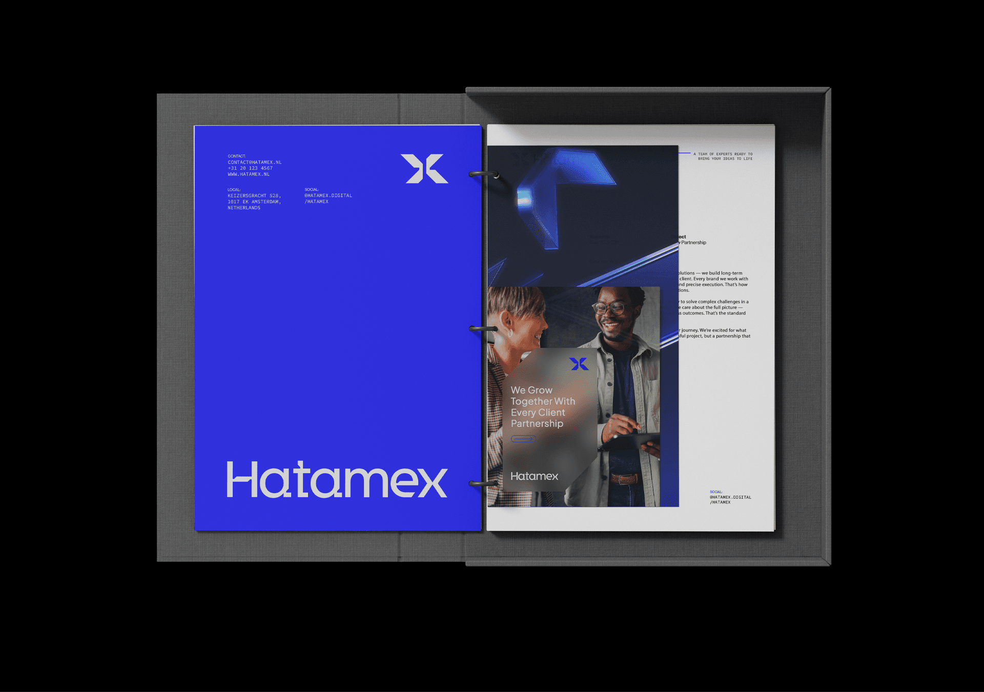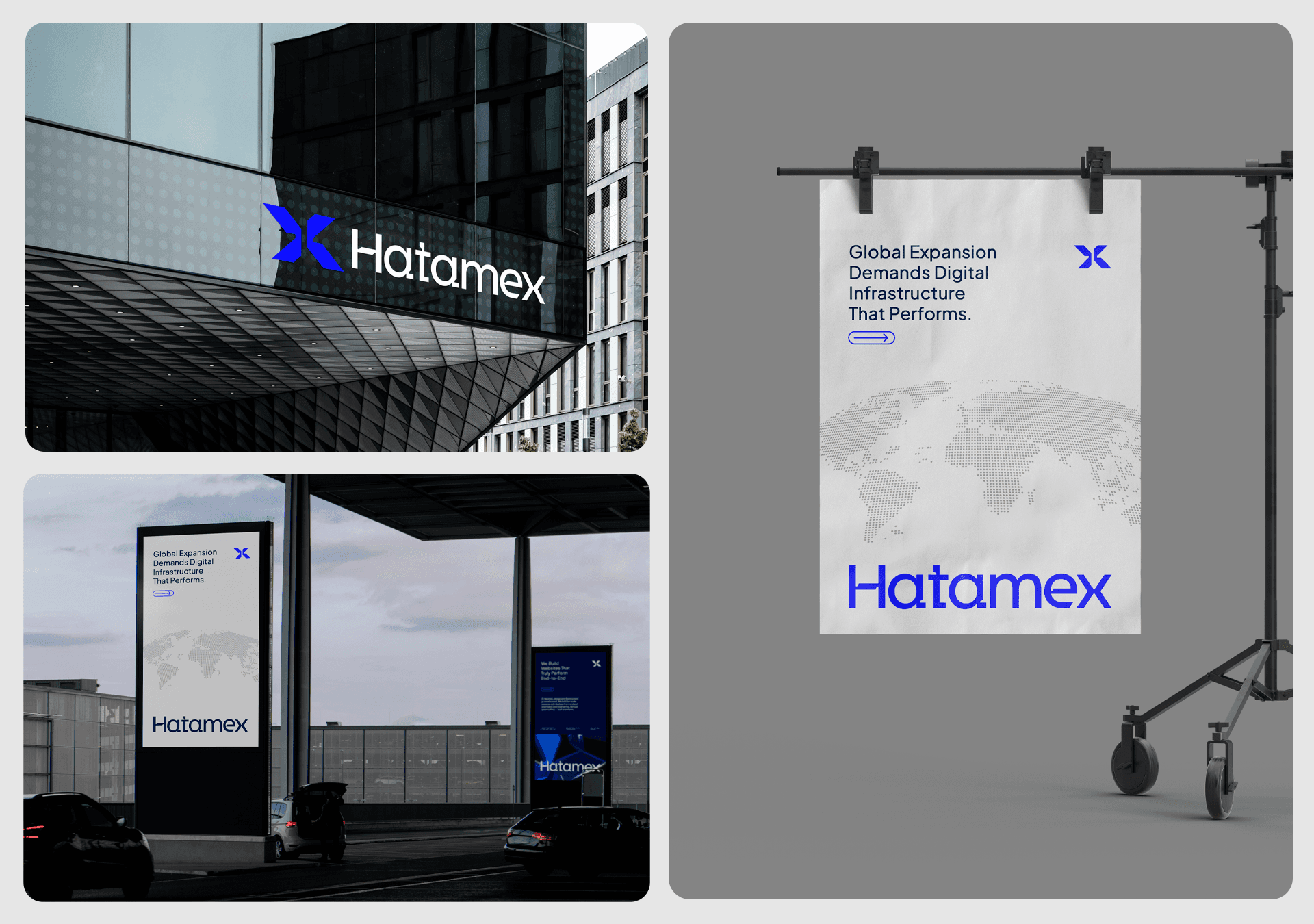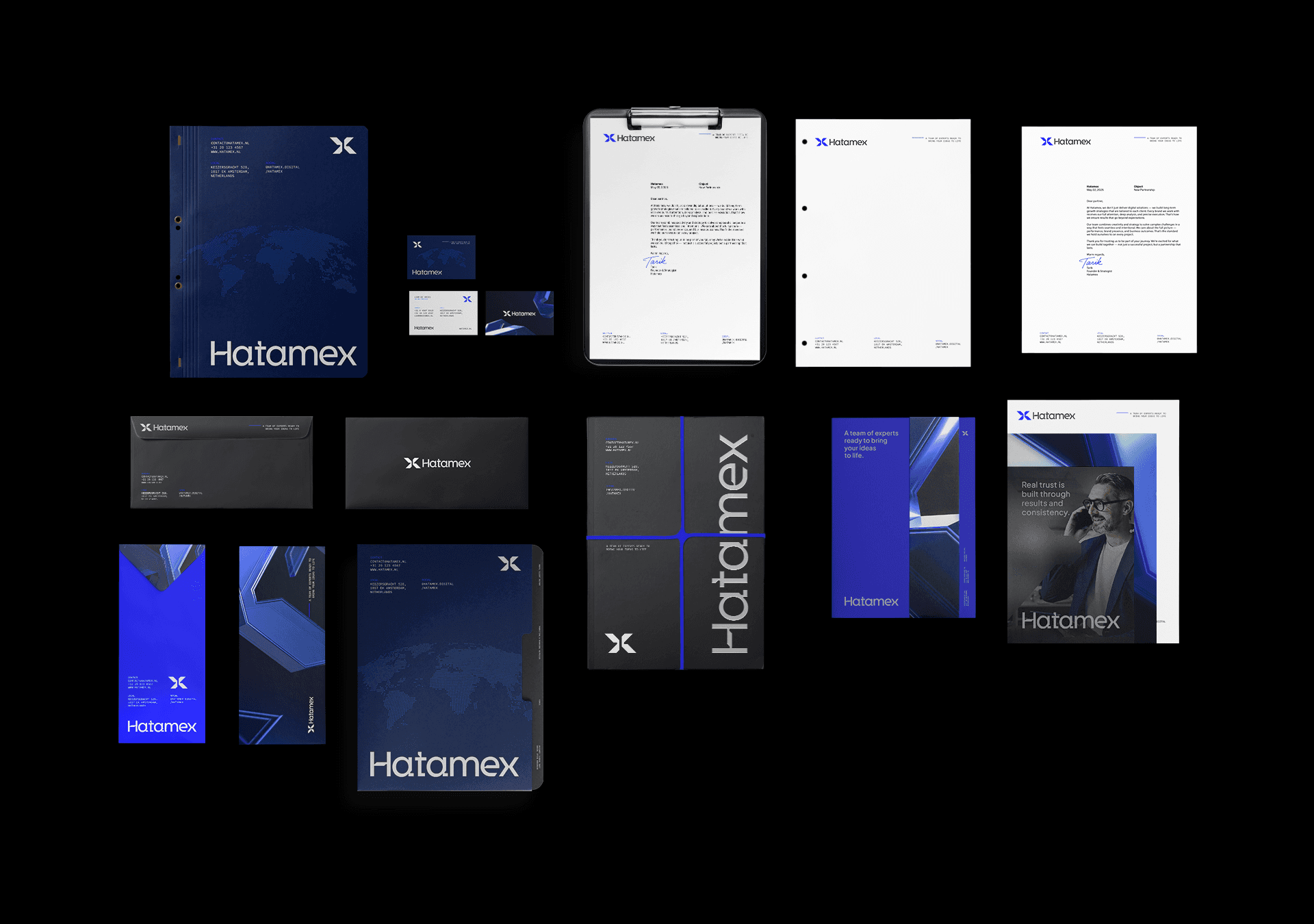Identidade visual desenvolvida para a Hatamex, agência digital internacional especializada em estratégia e crescimento digital. O projeto traduz a personalidade técnica, moderna e global da marca por meio de um sistema visual preciso e sofisticado, unindo clareza, funcionalidade e refinamento em cada detalhe.