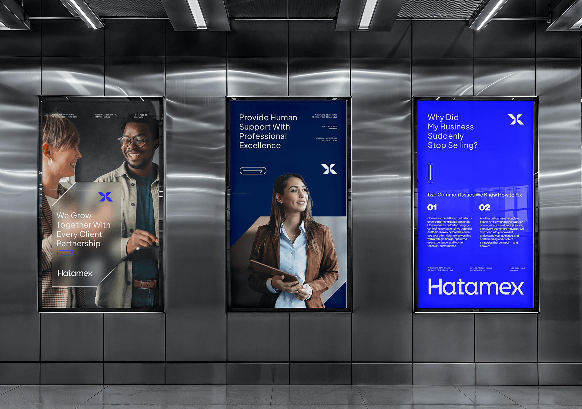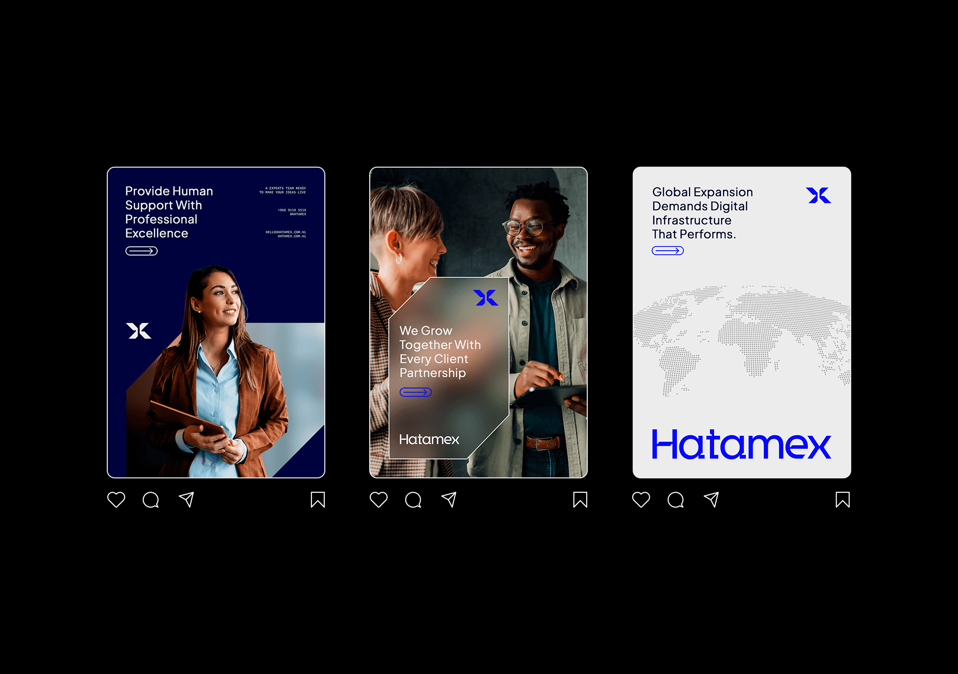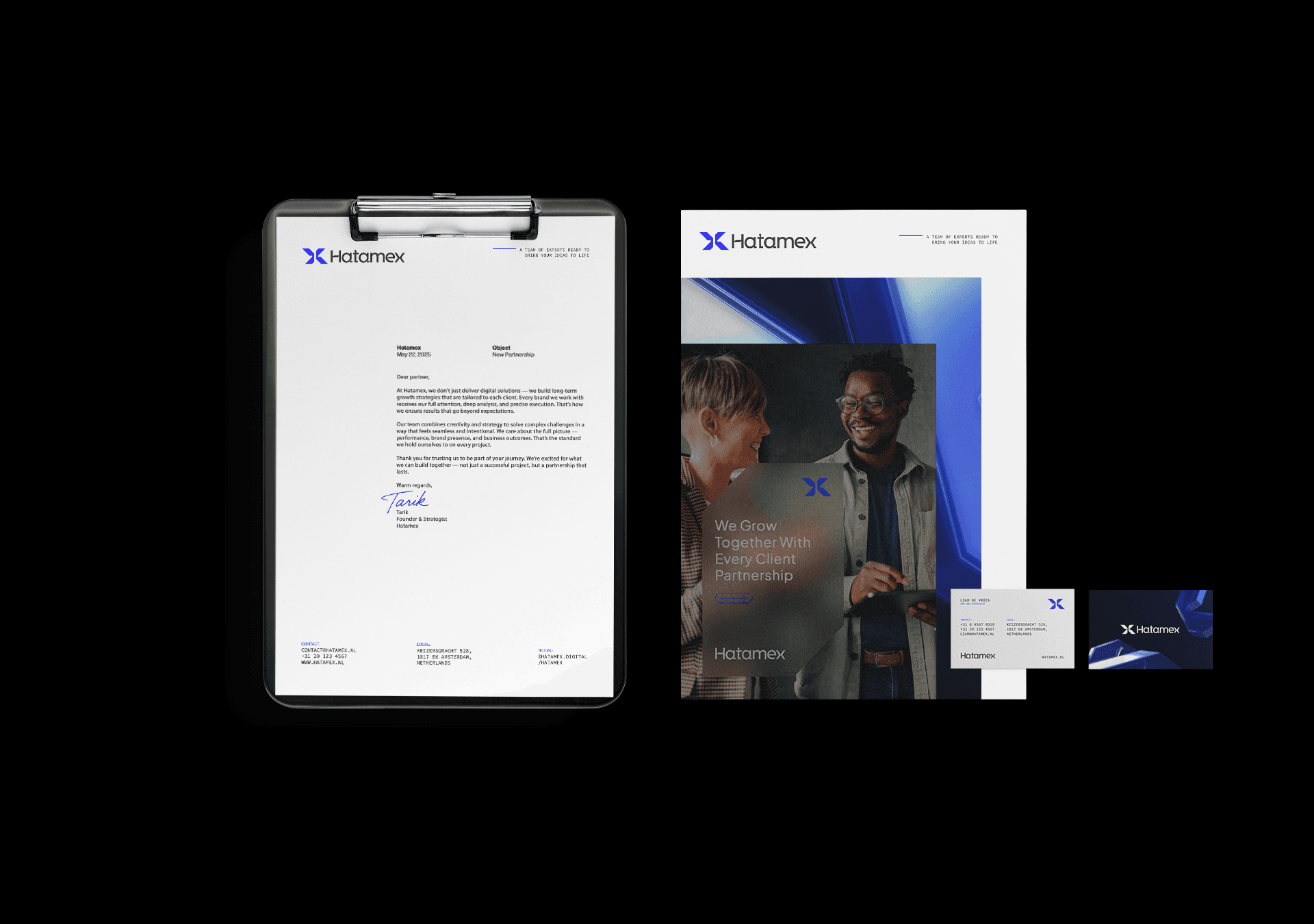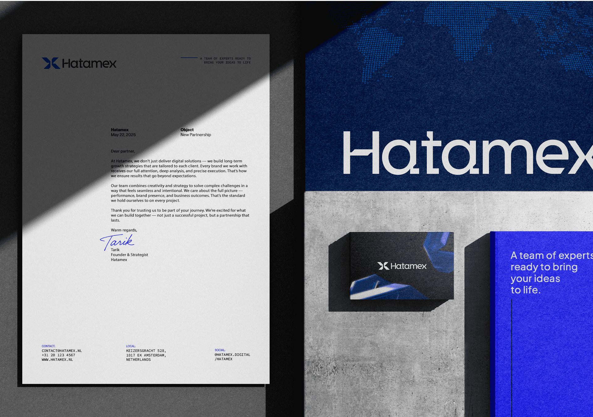 Identidade visual desenvolvida para a Hatamex, agência digital internacional especializada em estratégia e crescimento digital. O projeto traduz a personalidade técnica, moderna e global da marca por meio de um sistema visual preciso e sofisticado, unindo clareza, funcionalidade e refinamento em cada detalhe.