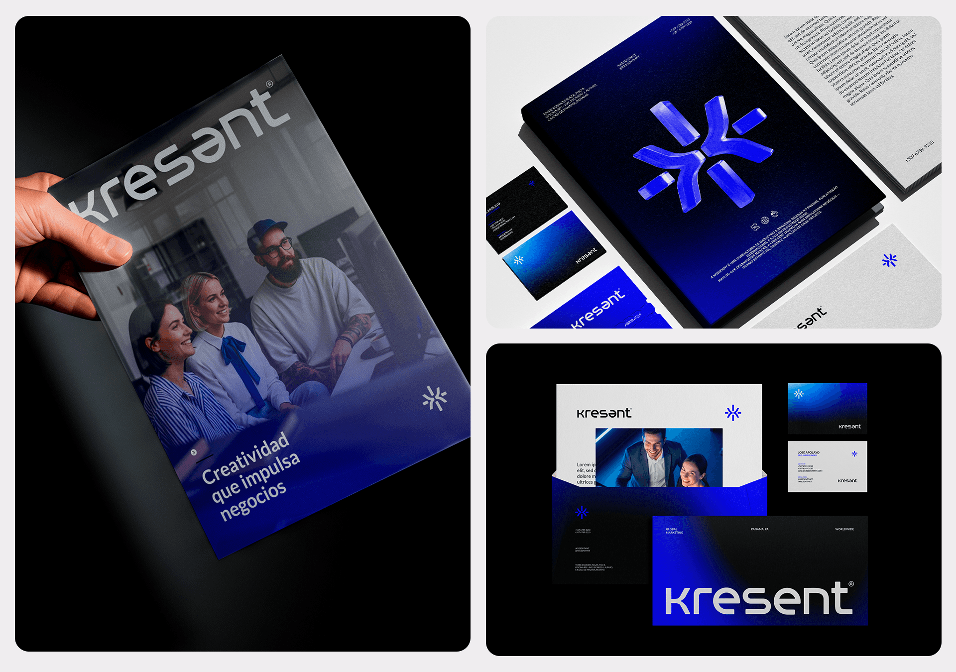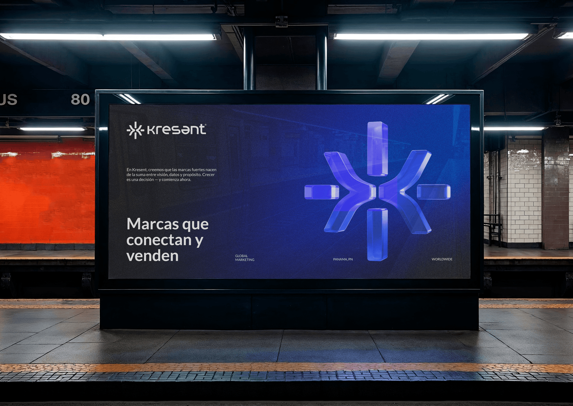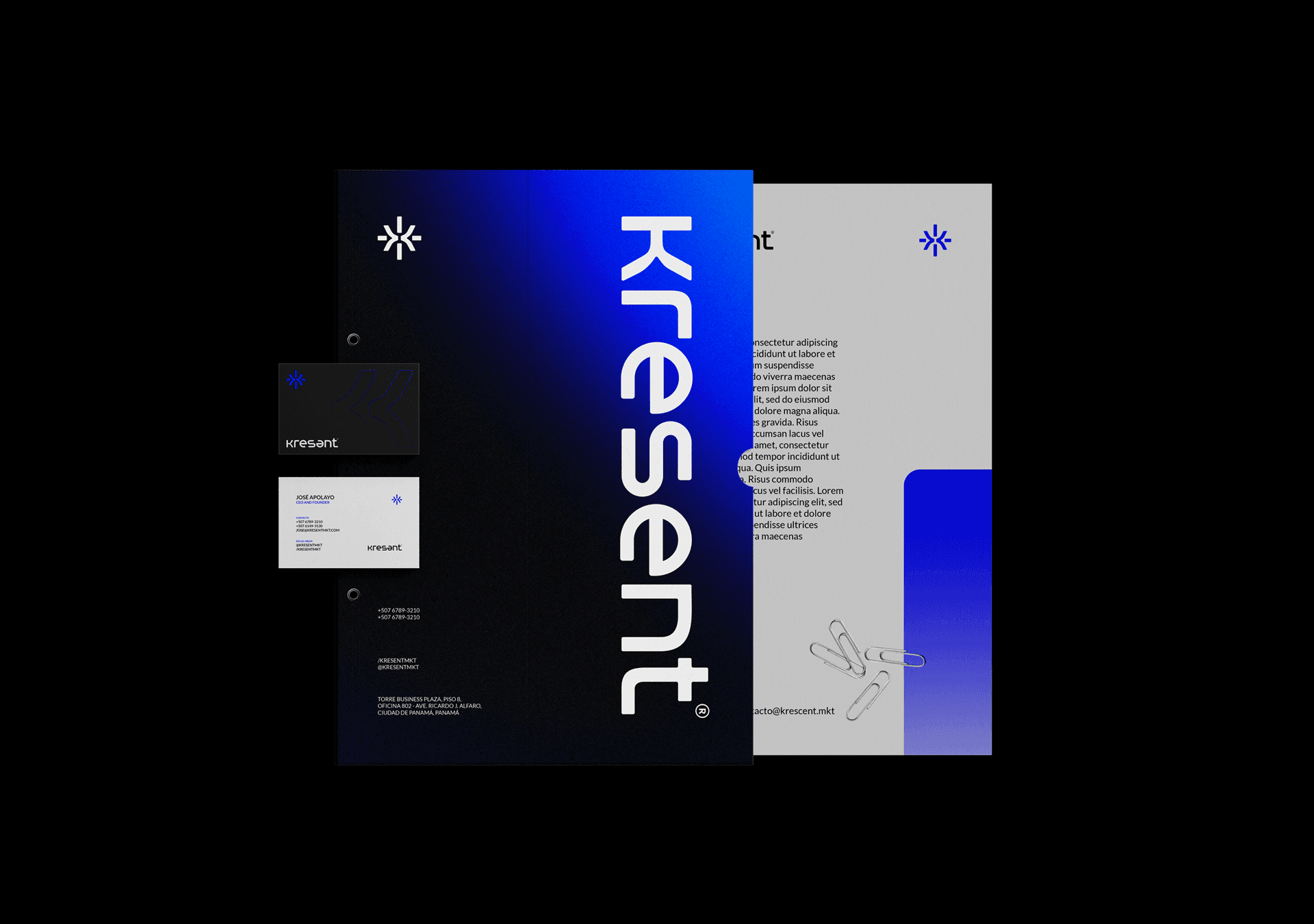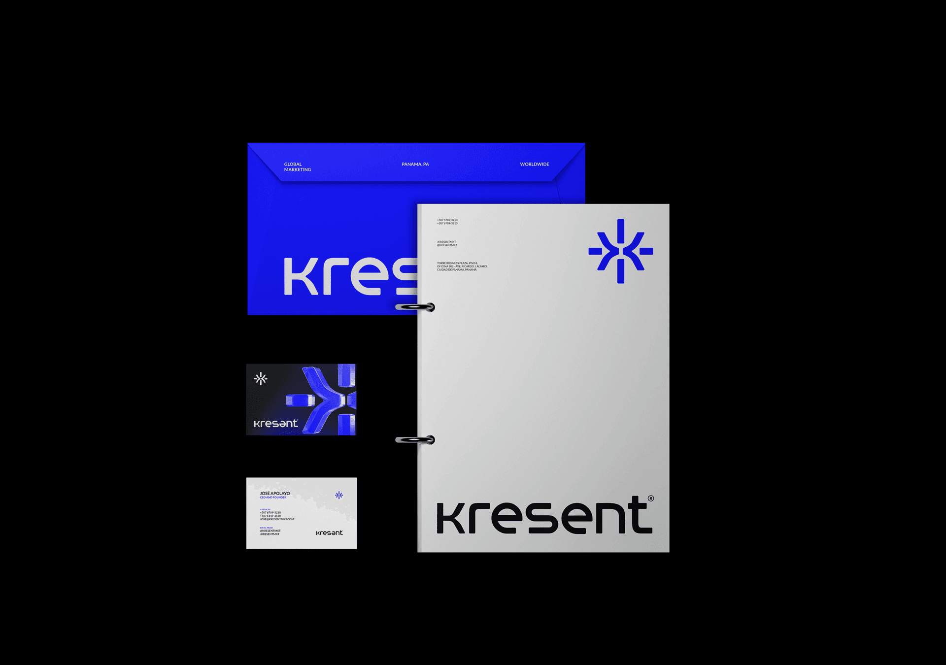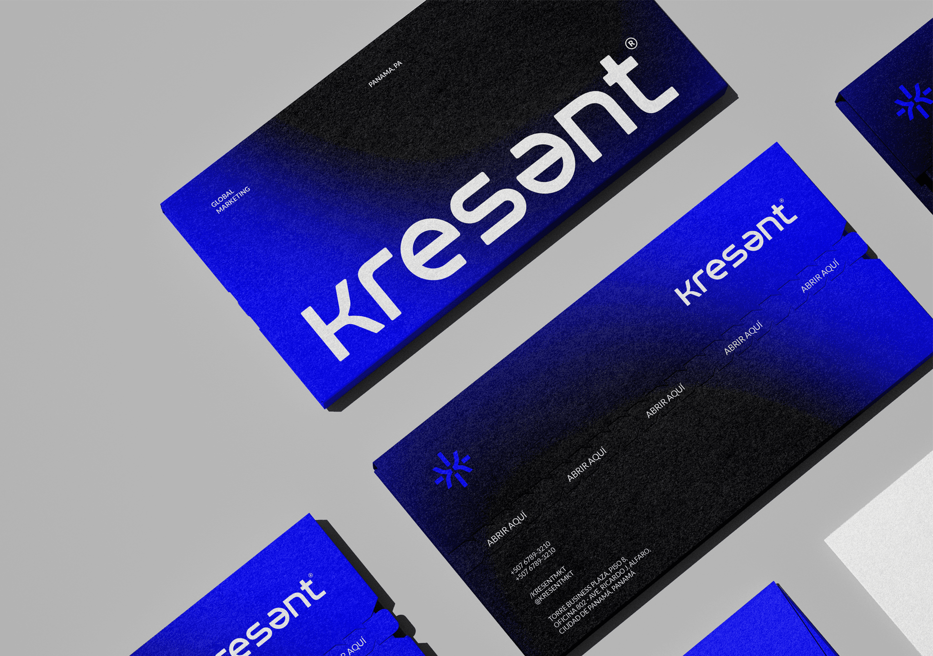 Identidade visual desenvolvida para a Krescent, consultoria estratégica de branding e marketing com sede no Panamá e atuação internacional. O projeto é construído em torno do conceito de movimento e crescimento contínuo, com tipografia exclusiva derivada da letra K que funciona simultaneamente como logotipo e símbolo. Paleta sóbria e sofisticada completa um sistema coeso, escalável e preparado para mercados altamente competitivos.