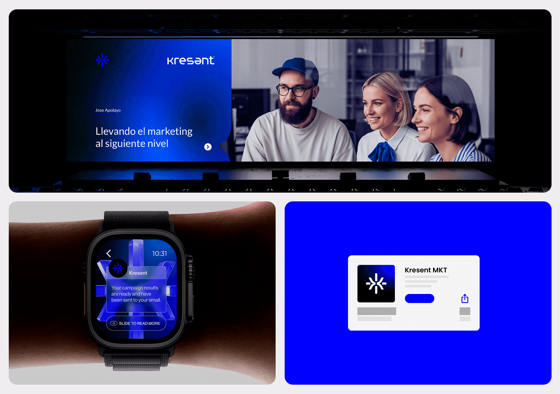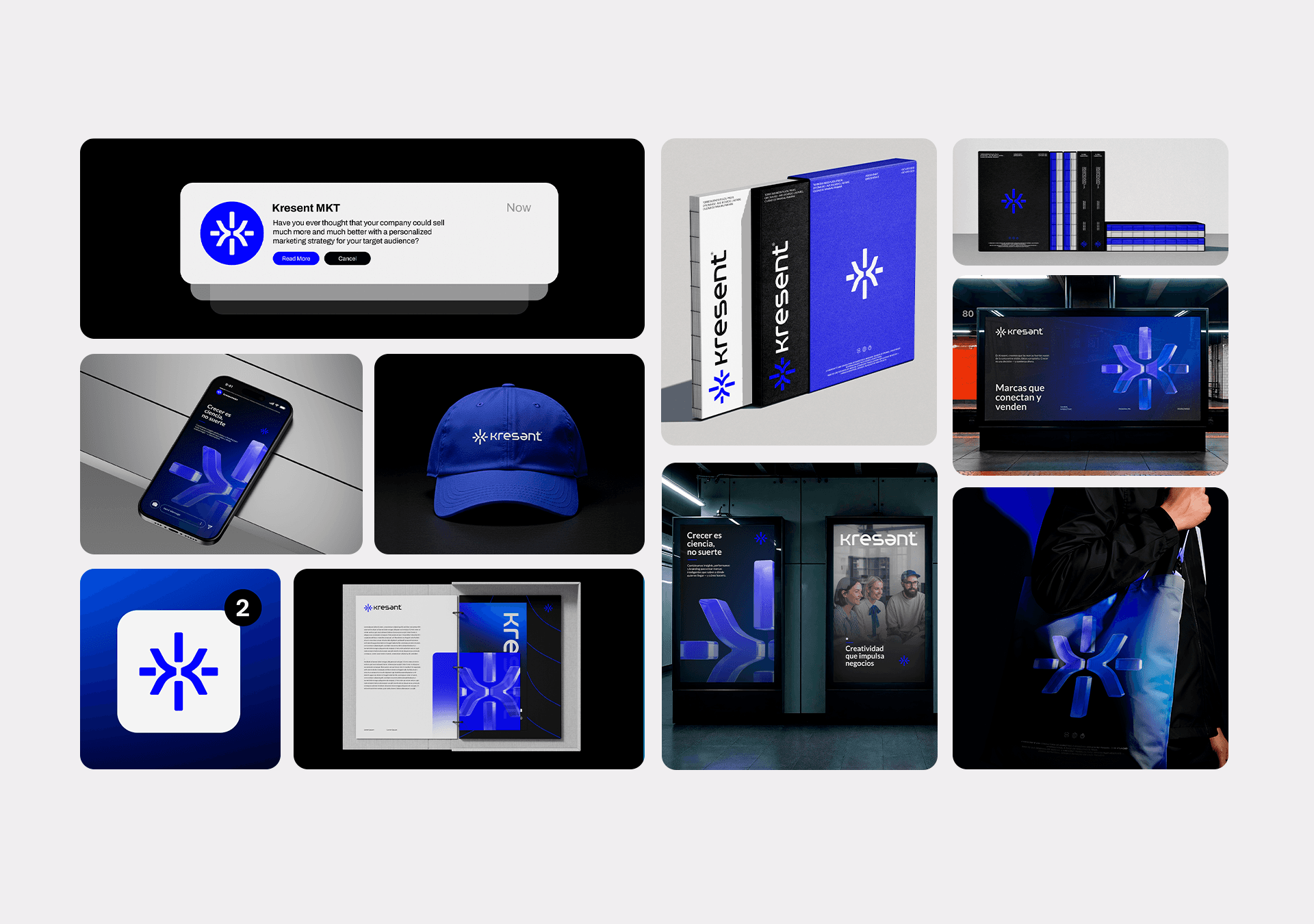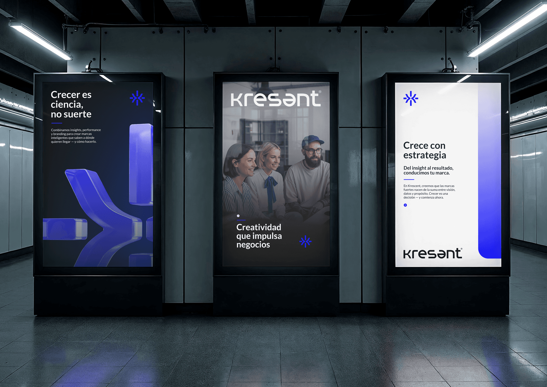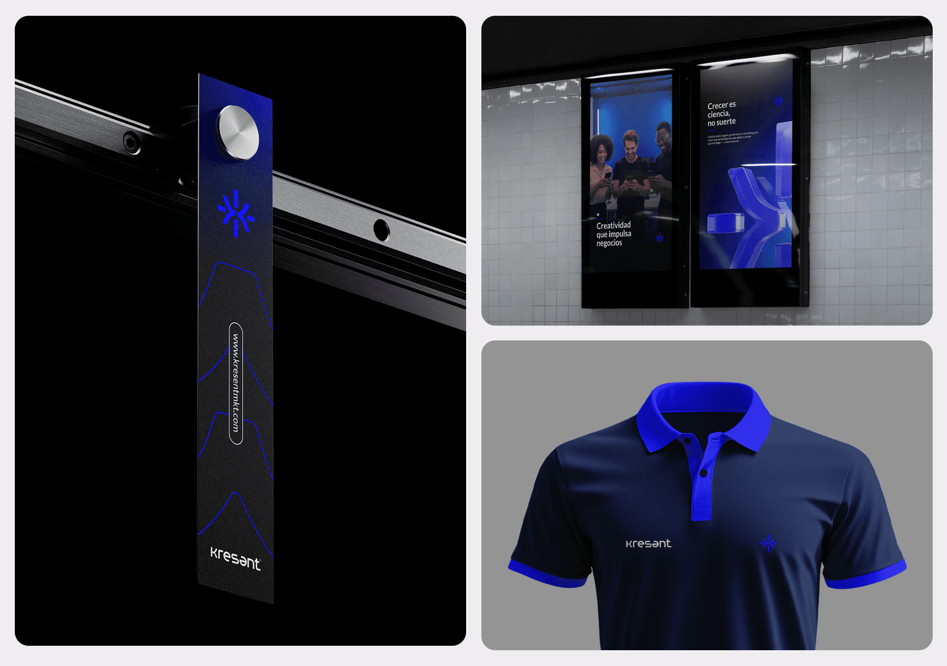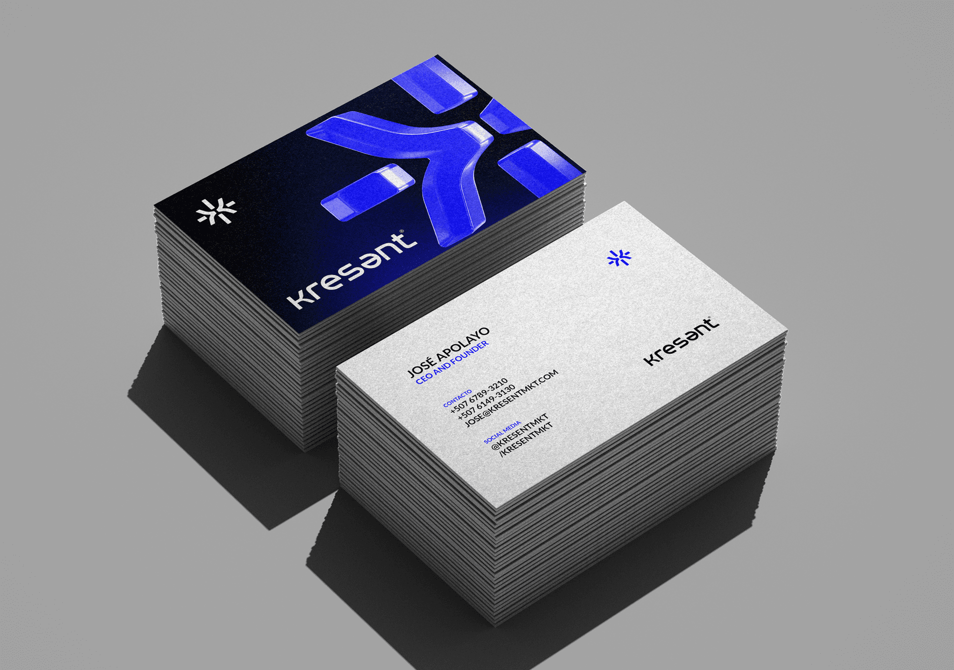 Identidade visual desenvolvida para a Krescent, consultoria estratégica de branding e marketing com sede no Panamá e atuação internacional. O projeto é construído em torno do conceito de movimento e crescimento contínuo, com tipografia exclusiva derivada da letra K que funciona simultaneamente como logotipo e símbolo. Paleta sóbria e sofisticada completa um sistema coeso, escalável e preparado para mercados altamente competitivos.
