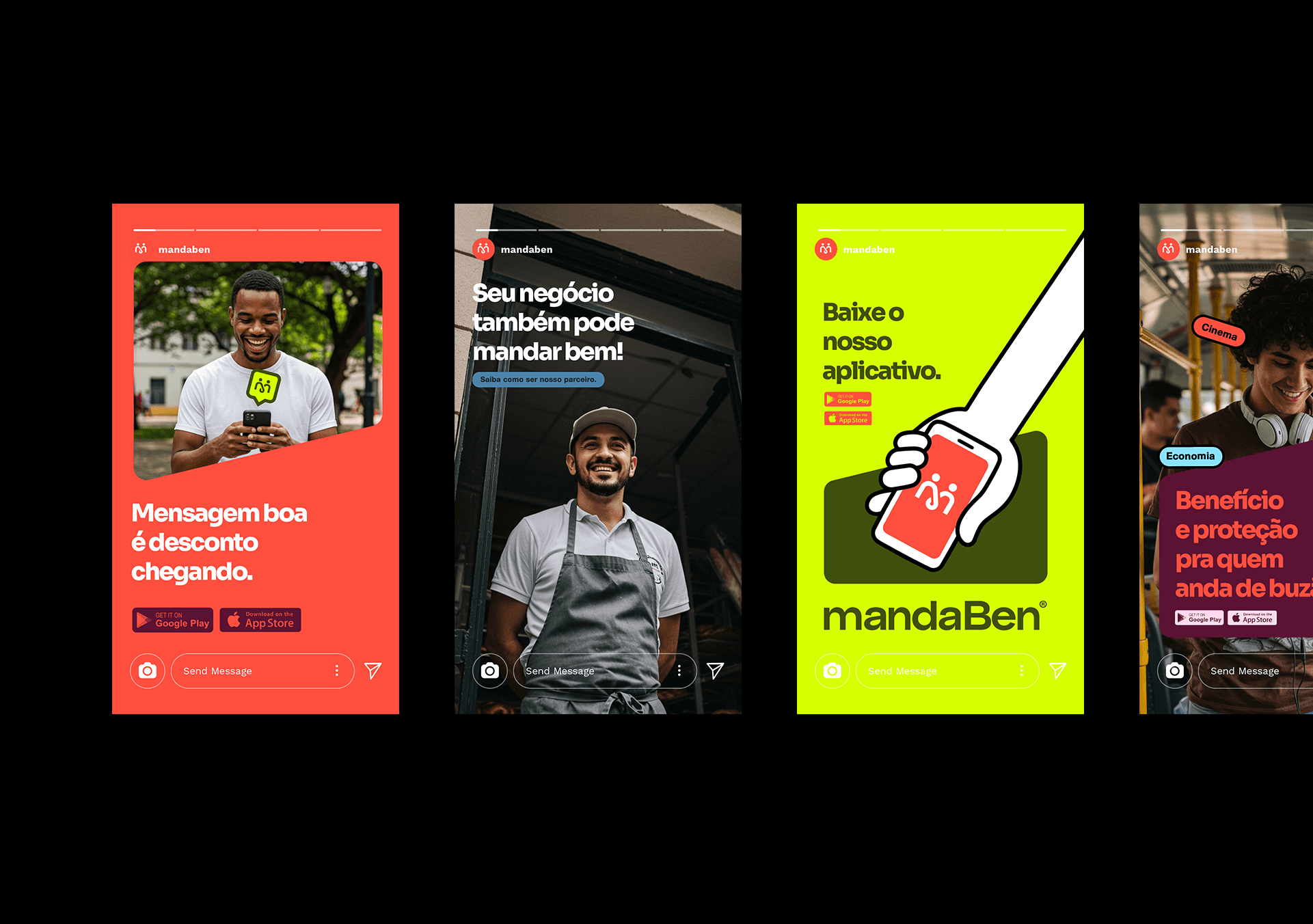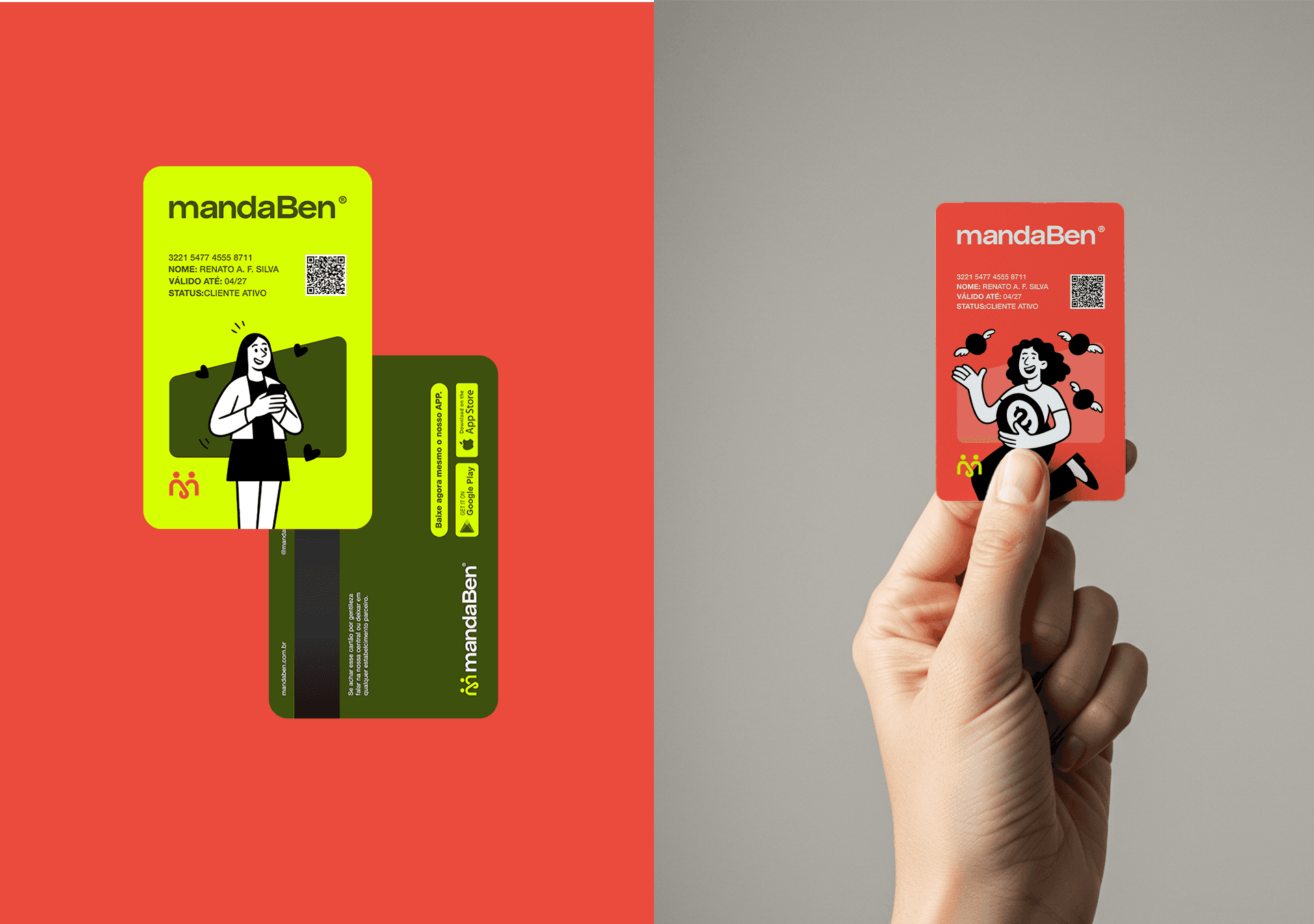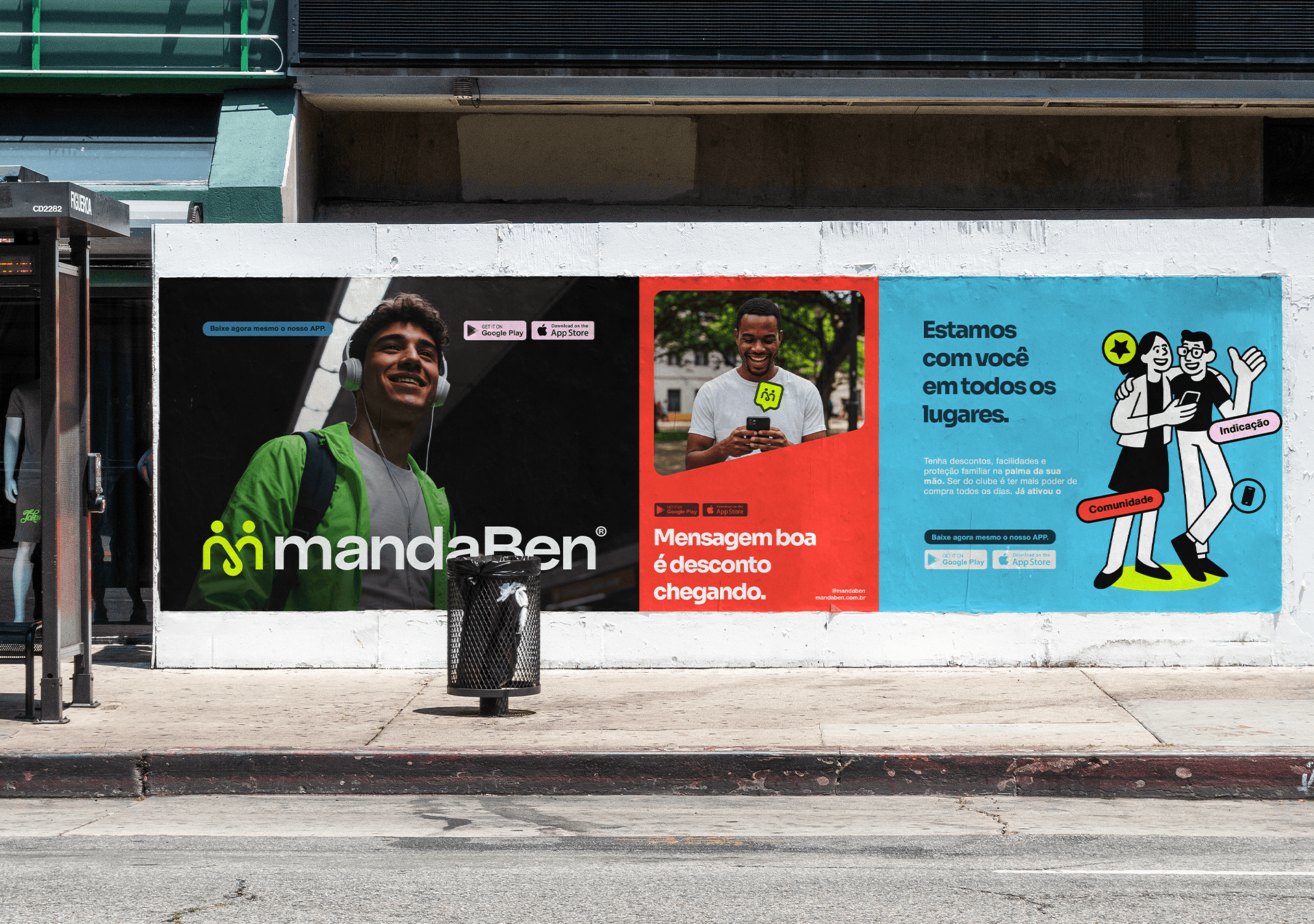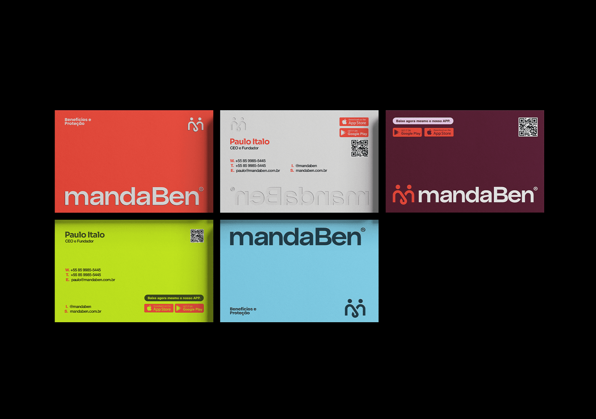 Identidade visual desenvolvida para a MandaBen, plataforma de benefícios voltada para famílias. O símbolo une três conceitos: a letra M, o laço como símbolo de comunidade e união, e as pessoas como centro de tudo. Formas arredondadas, tipografia amigável e uma paleta vibrante compõem uma marca acolhedora, alegre e com forte apelo popular.