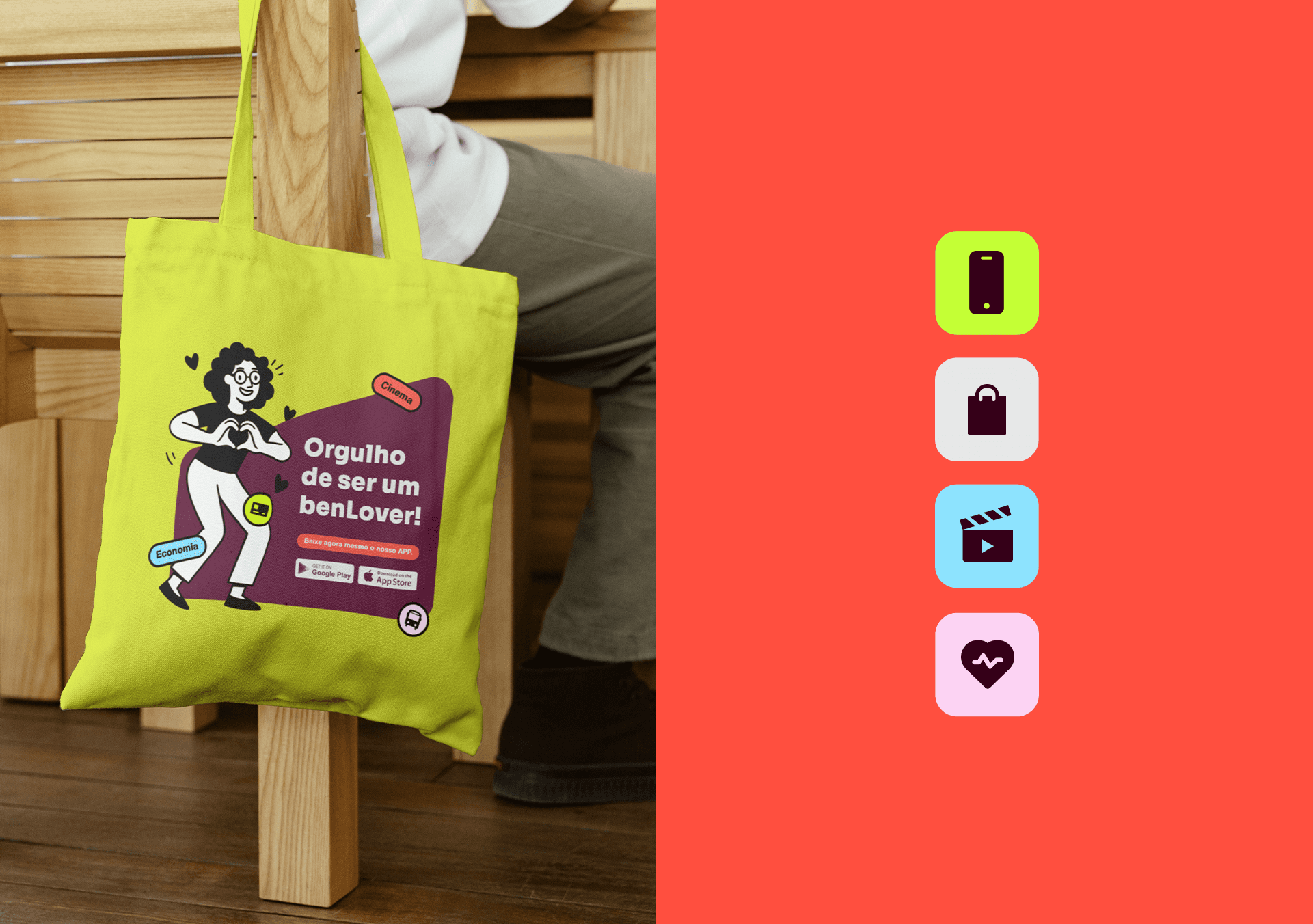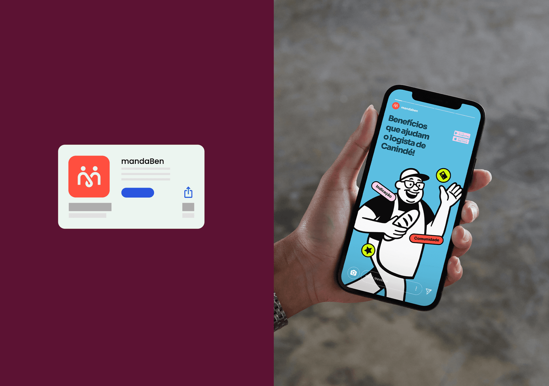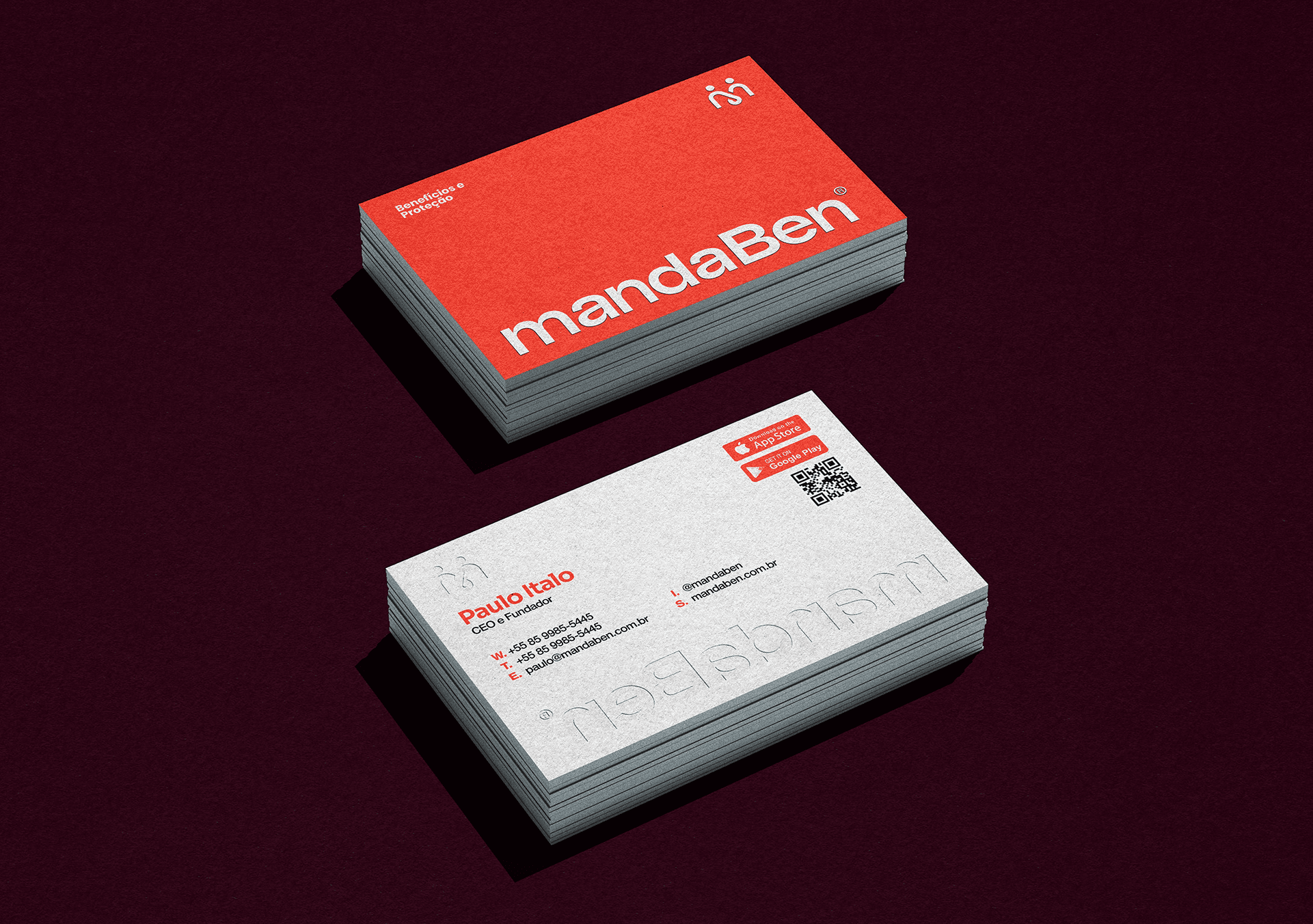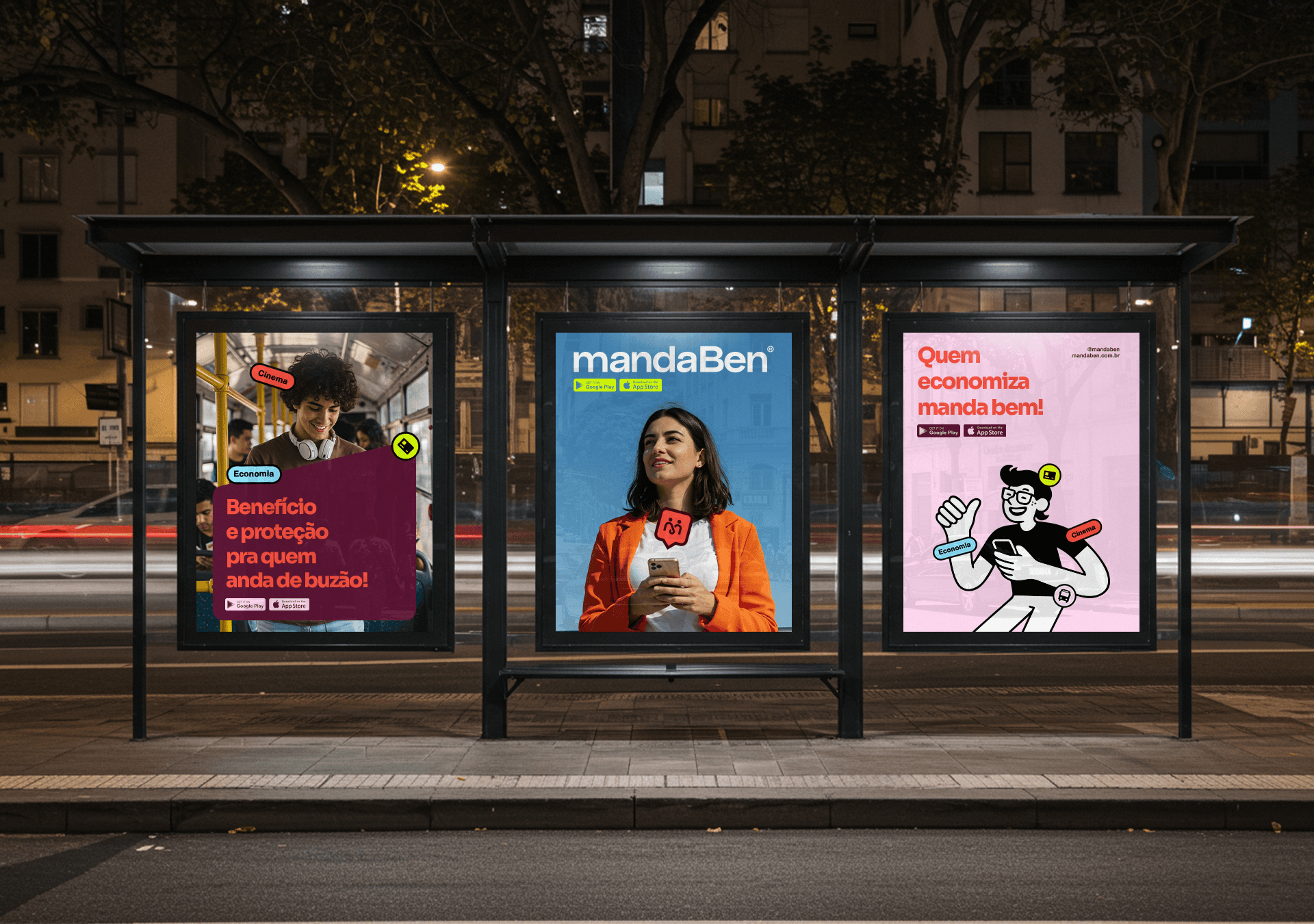 Identidade visual desenvolvida para a MandaBen, plataforma de benefícios voltada para famílias. O símbolo une três conceitos: a letra M, o laço como símbolo de comunidade e união, e as pessoas como centro de tudo. Formas arredondadas, tipografia amigável e uma paleta vibrante compõem uma marca acolhedora, alegre e com forte apelo popular.